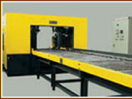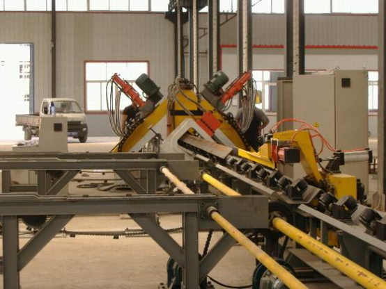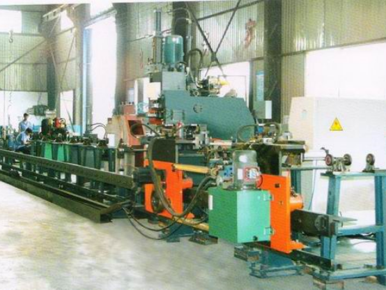 該機(jī)為龍門(mén)式五缸壓力機(jī),可利用前后管支架,對(duì)鋼管進(jìn)行矯直作業(yè),一機(jī)兩用。